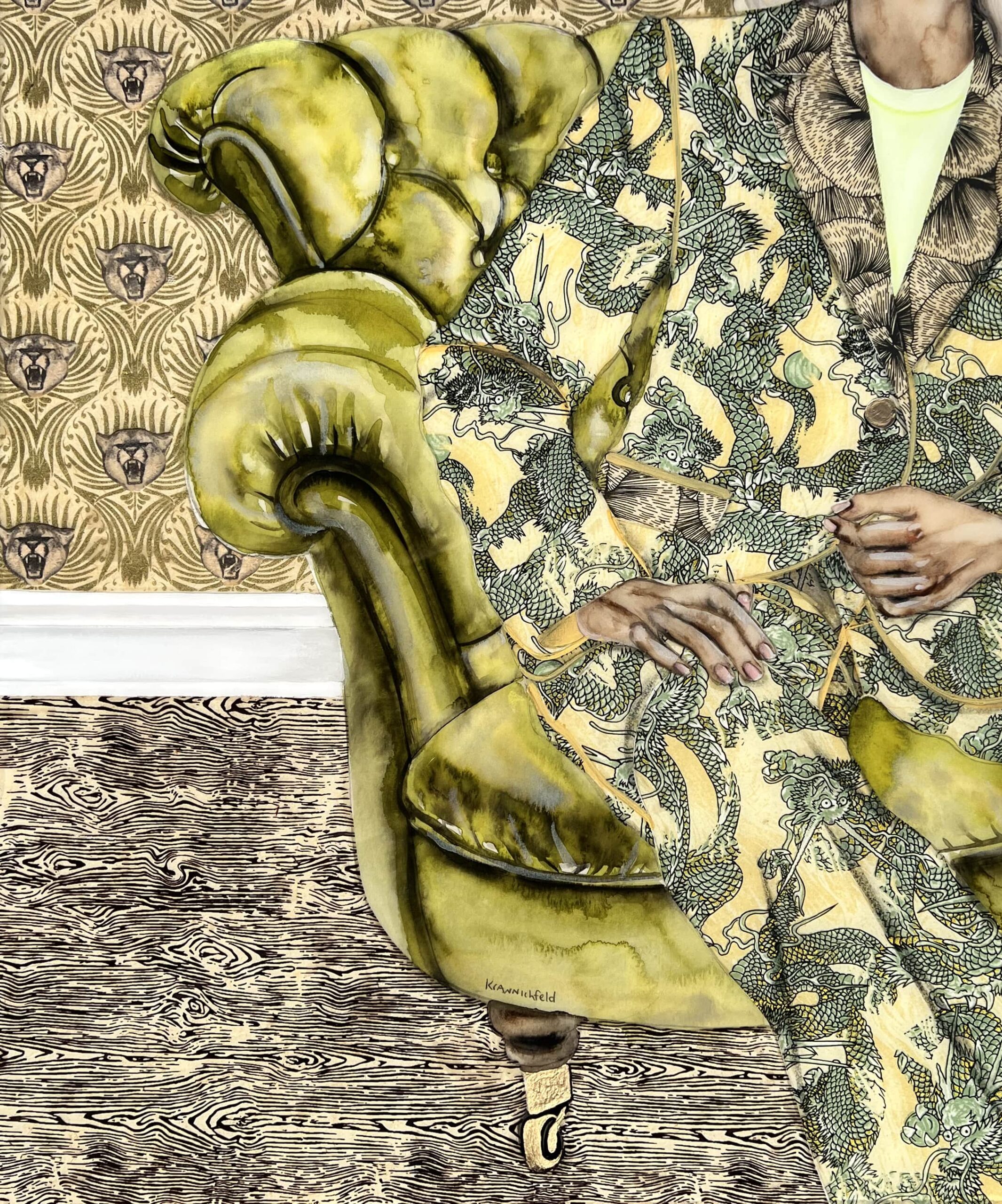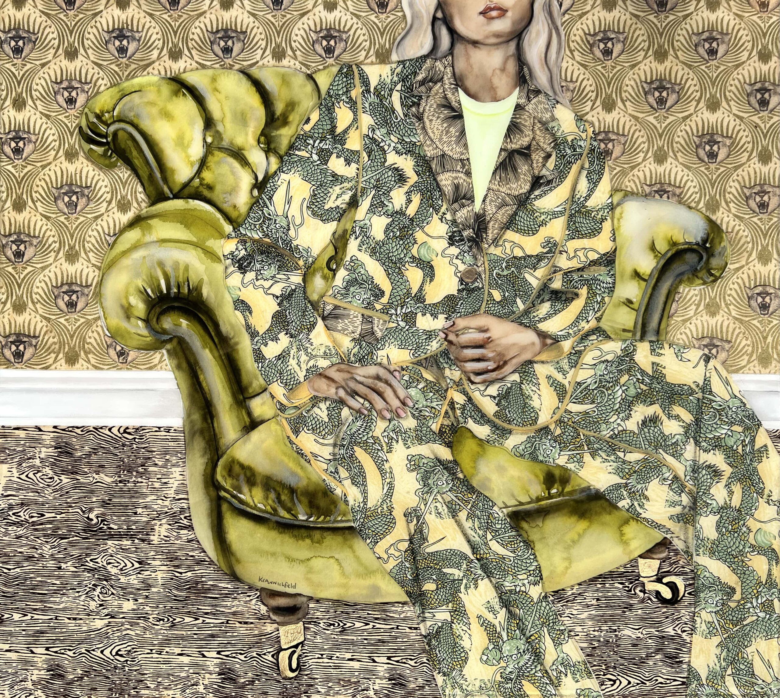 Chinese ink, watercolor, acrylic, paper collage, toned cyanotypes, and resin on paper mounted on panel