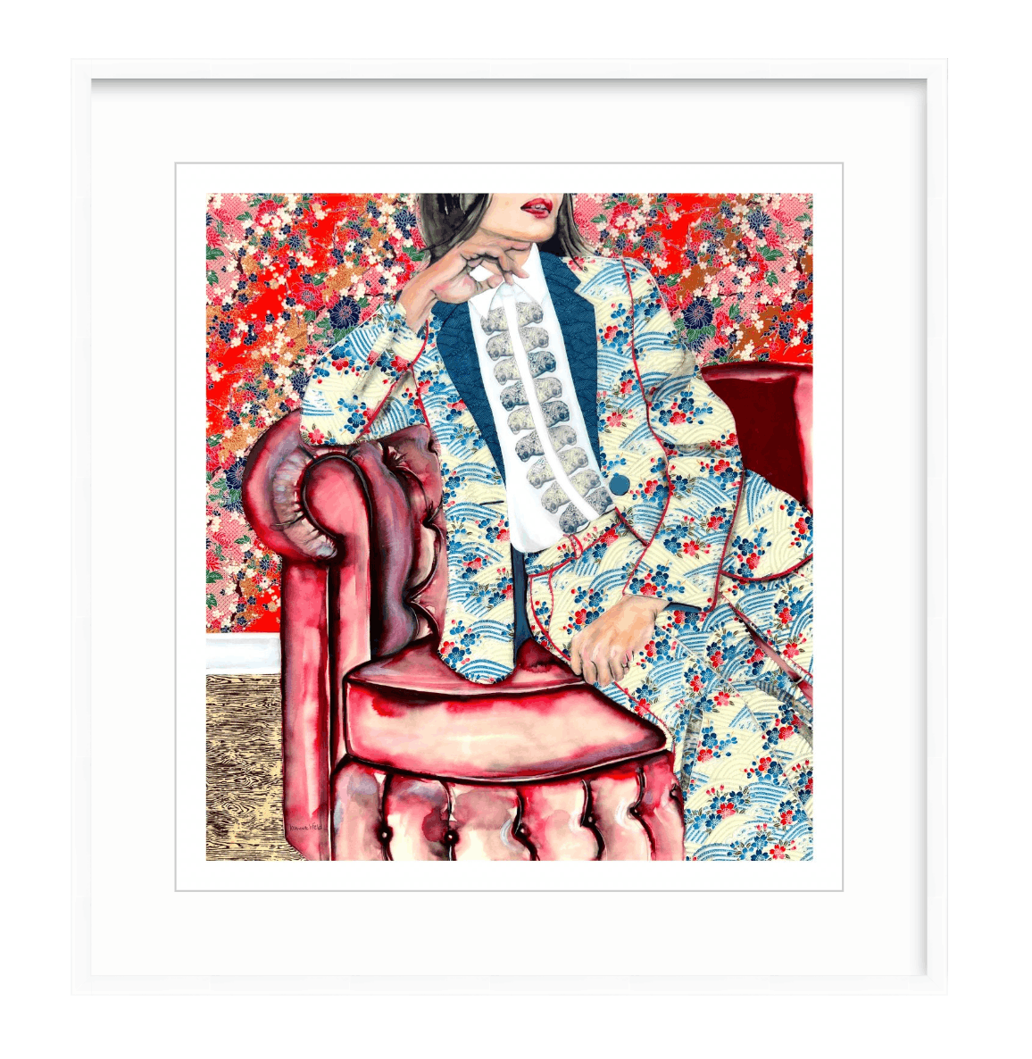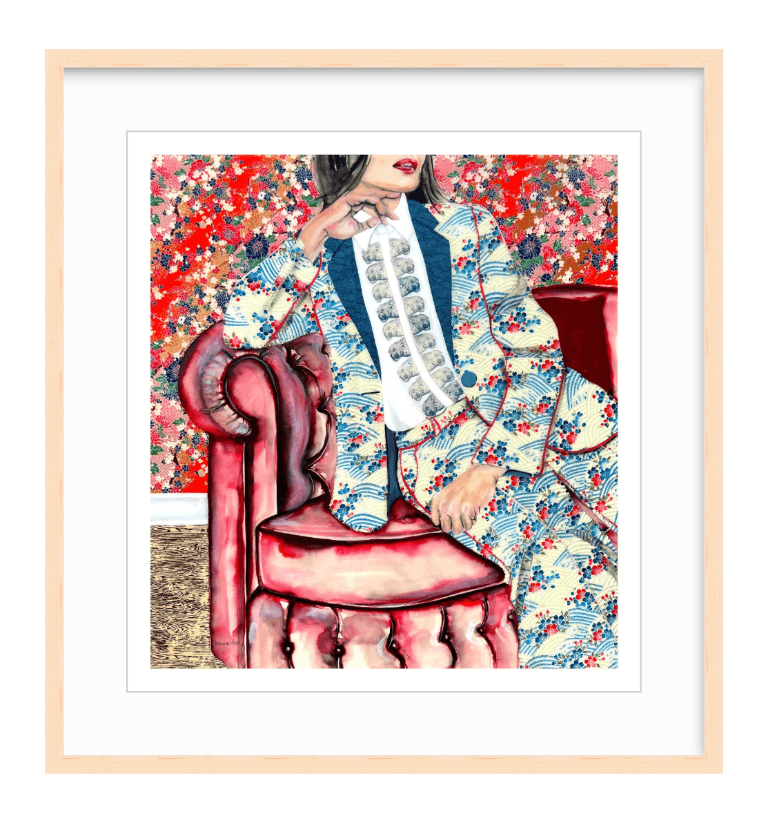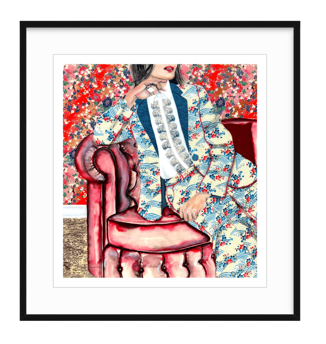 Information on frames: Solid wood frames with archival acid-free white mat, UV protective acrylic glazing, backing and hanging hardware included. Approximate outside frame dimensions: 29w x 31h. Sorry, the option of purchasing framed prints is for USA orders only.