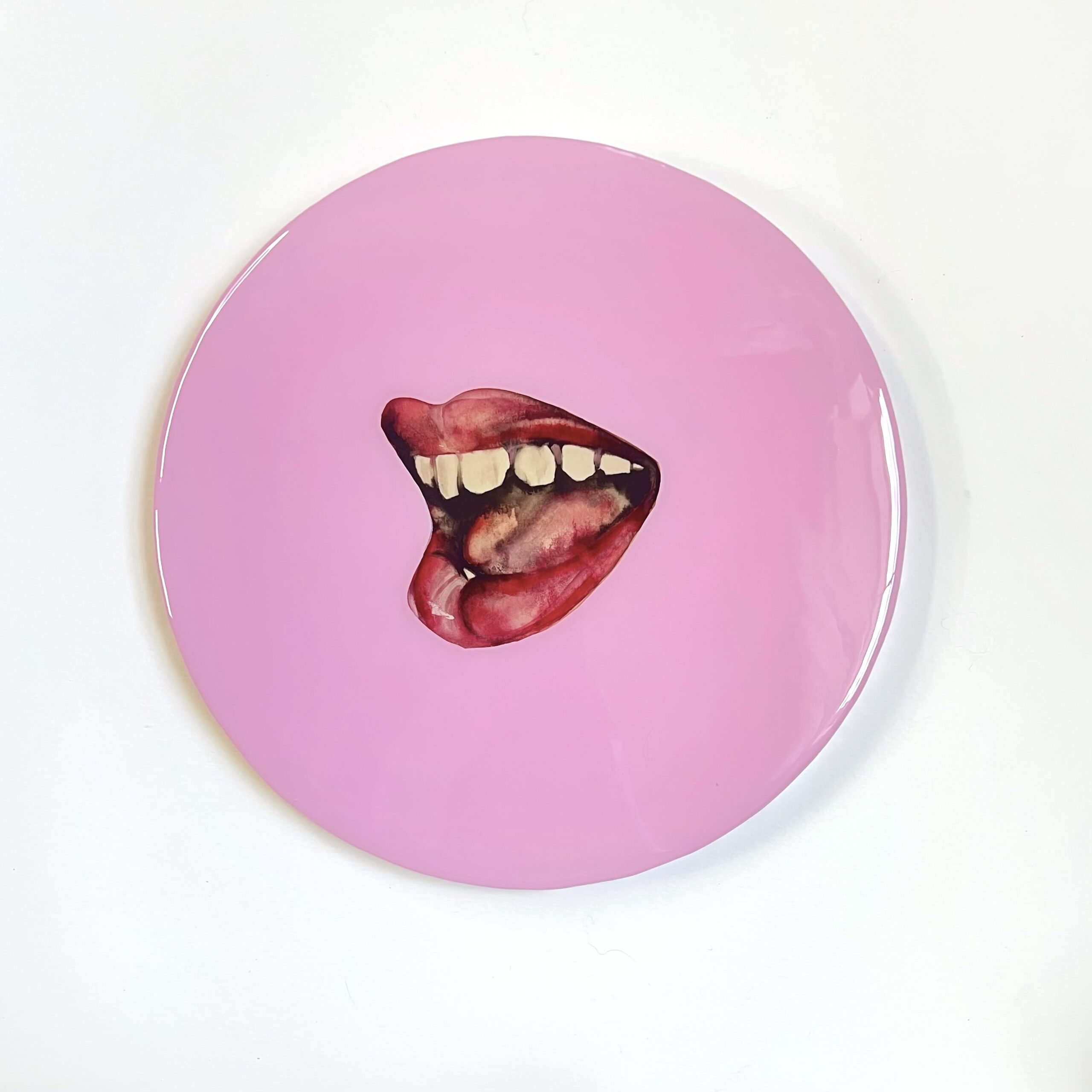 Original 12-inch diameter, 1/2-inch deep round painting. Watercolor, Chinese ink, acrylic, resin. Comes ready to hang.