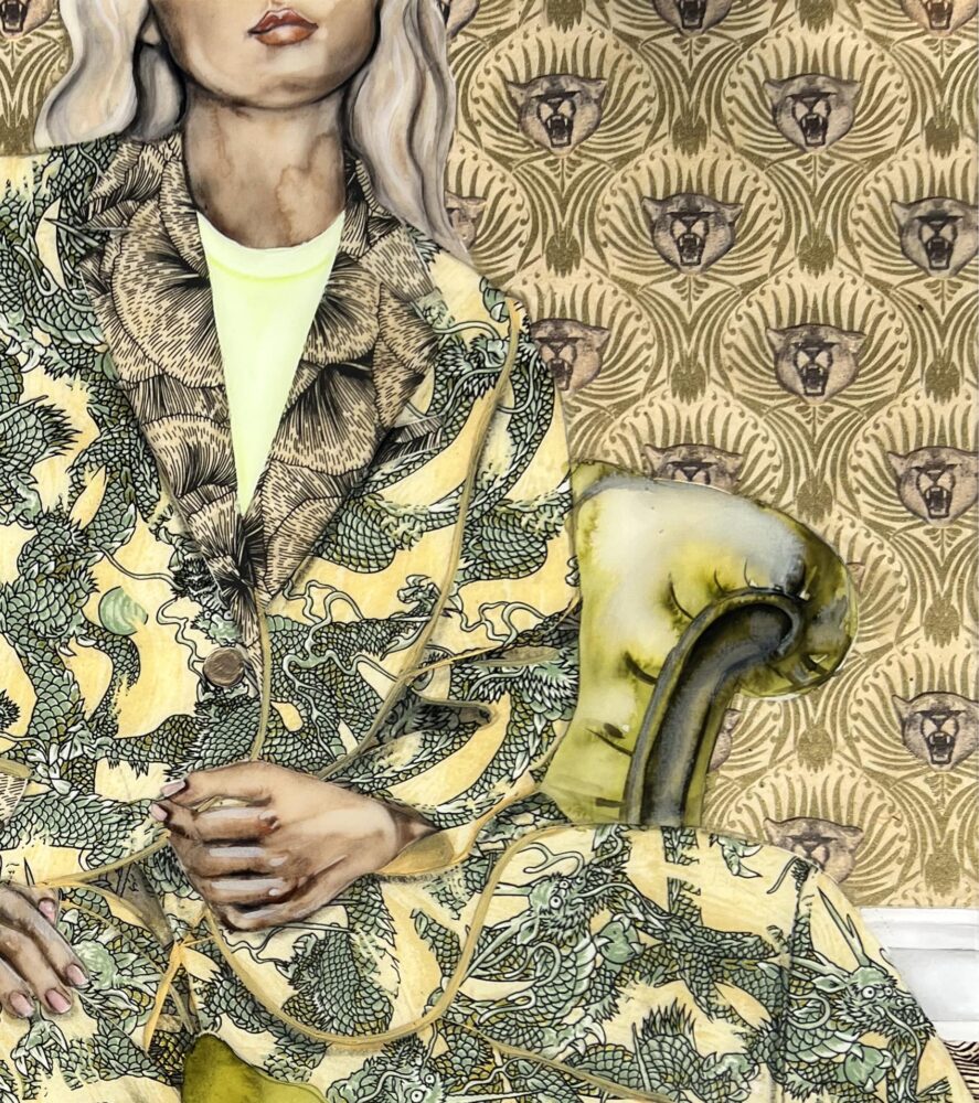 26 x 29 in. Chinese ink, watercolor, acrylic, toned cyanotypes, paper collage and resin.