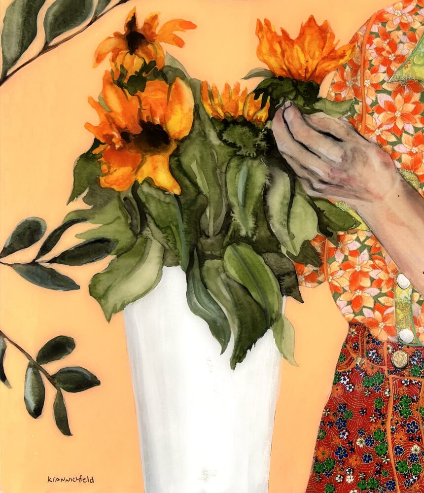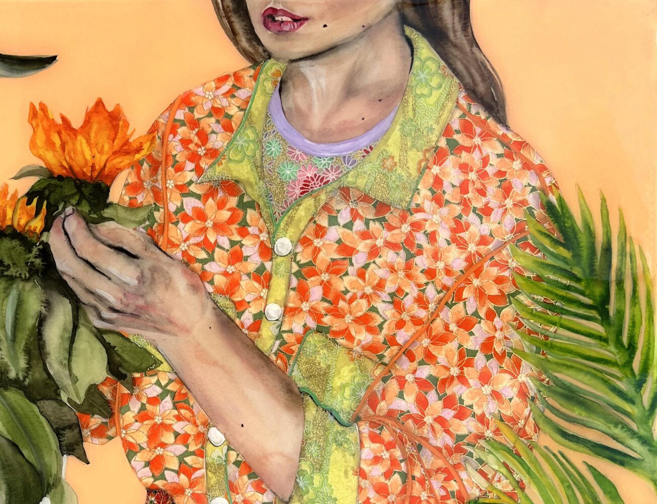 23w x 17h in. Chinese ink, watercolor, acrylic, paper collage and resin.