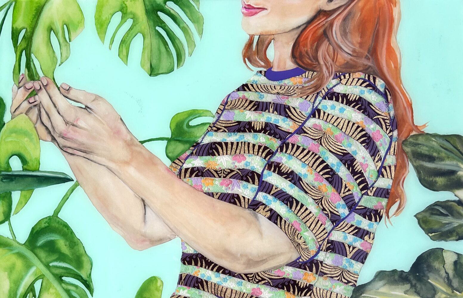 33w x 23h in. Chinese ink, watercolor, acrylic, paper collage and resin.